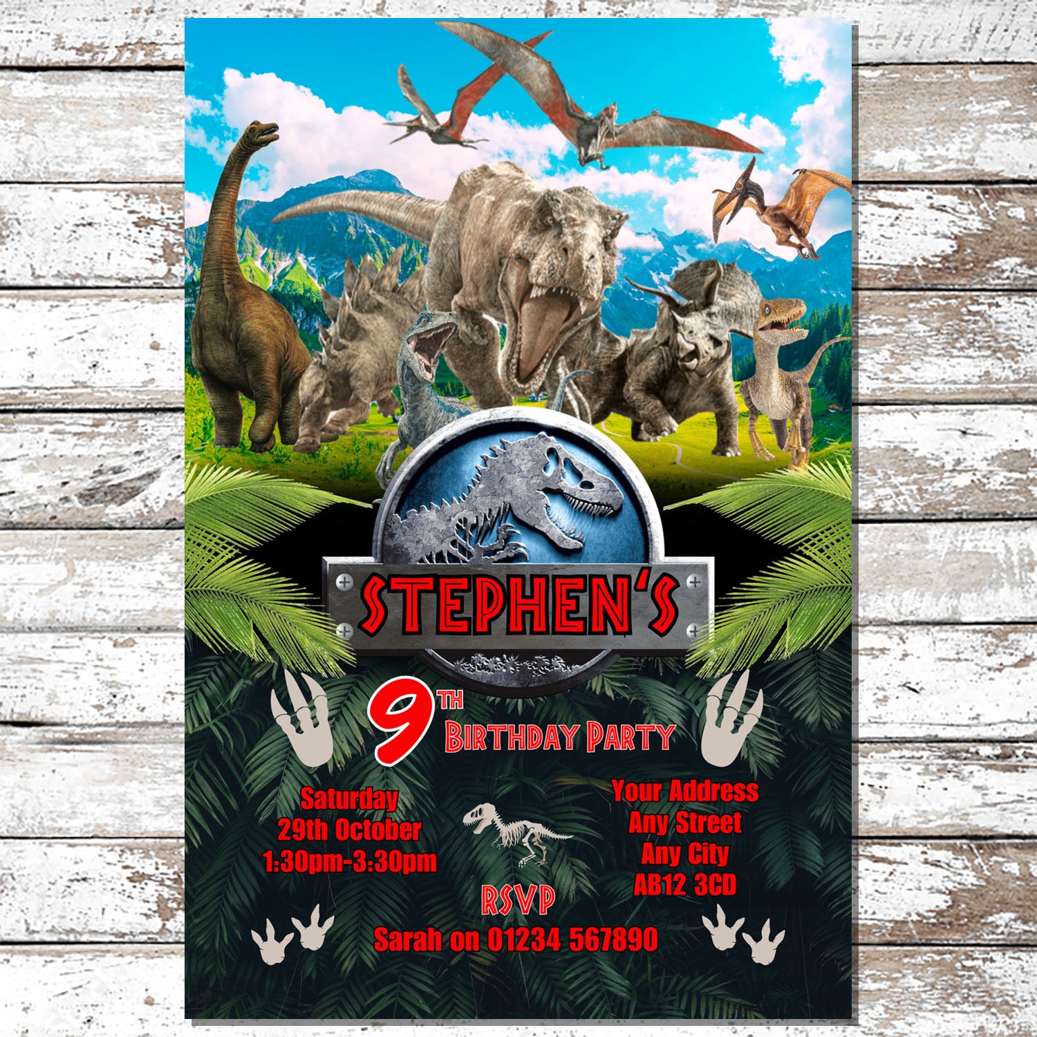 10 Personalised Jurassic Park Party Invitations With Envelopes