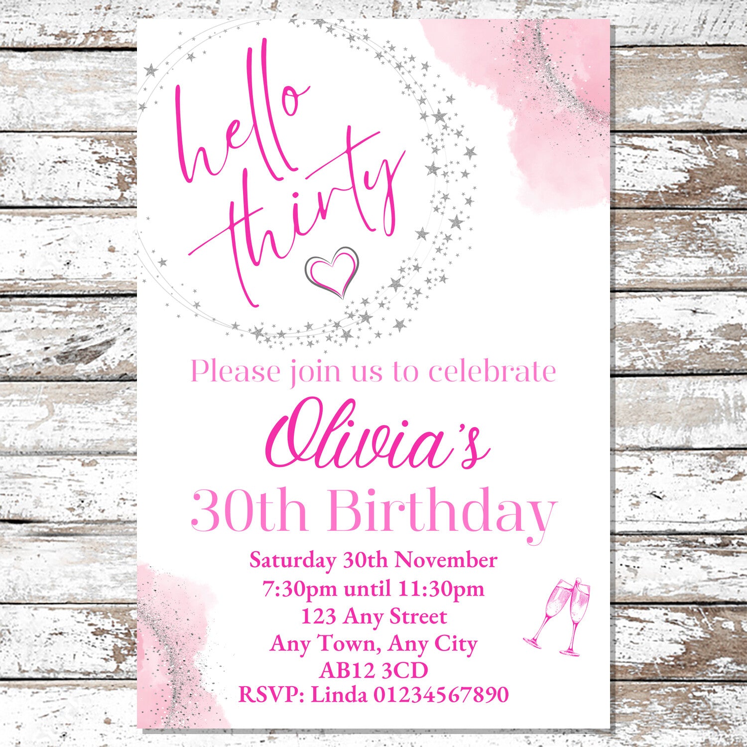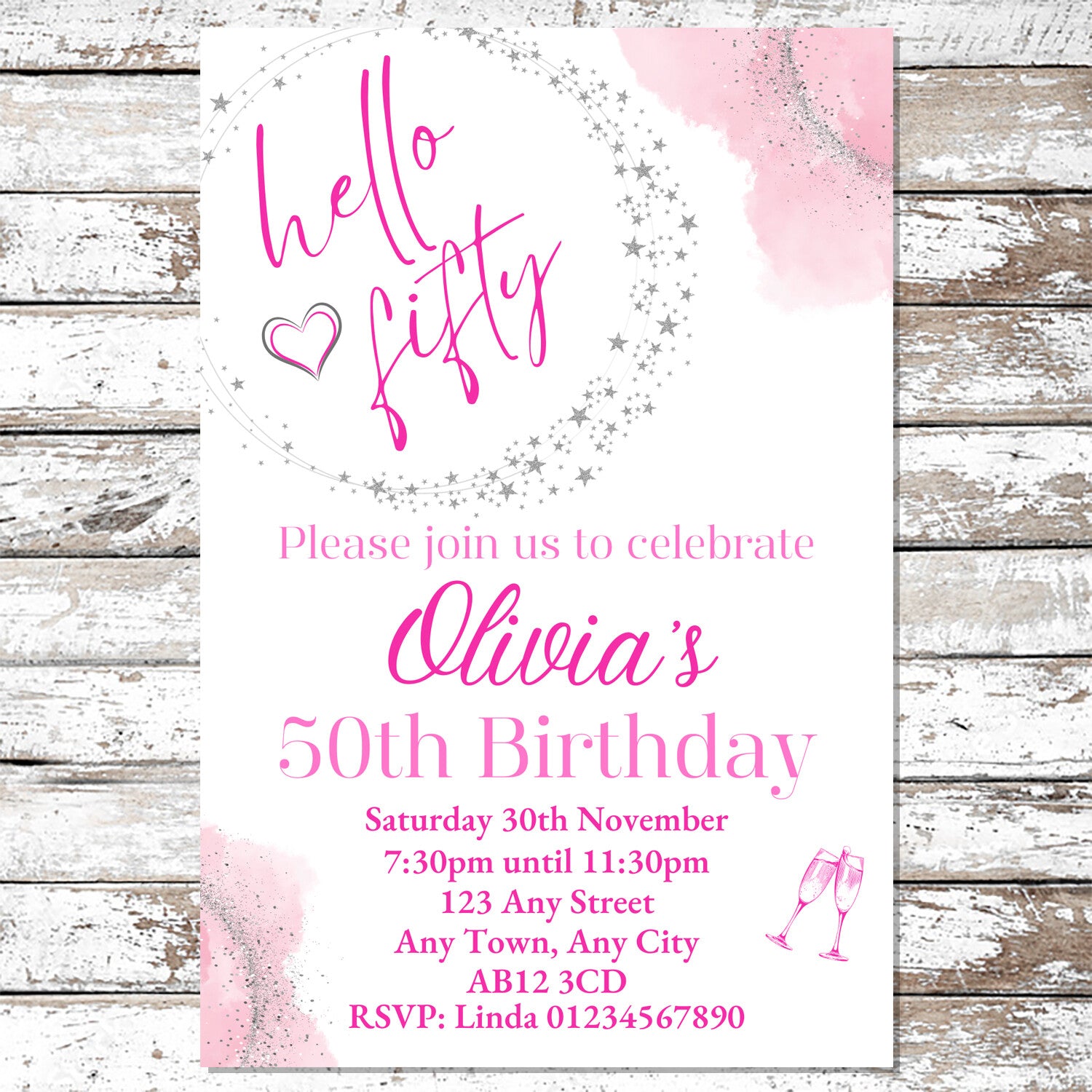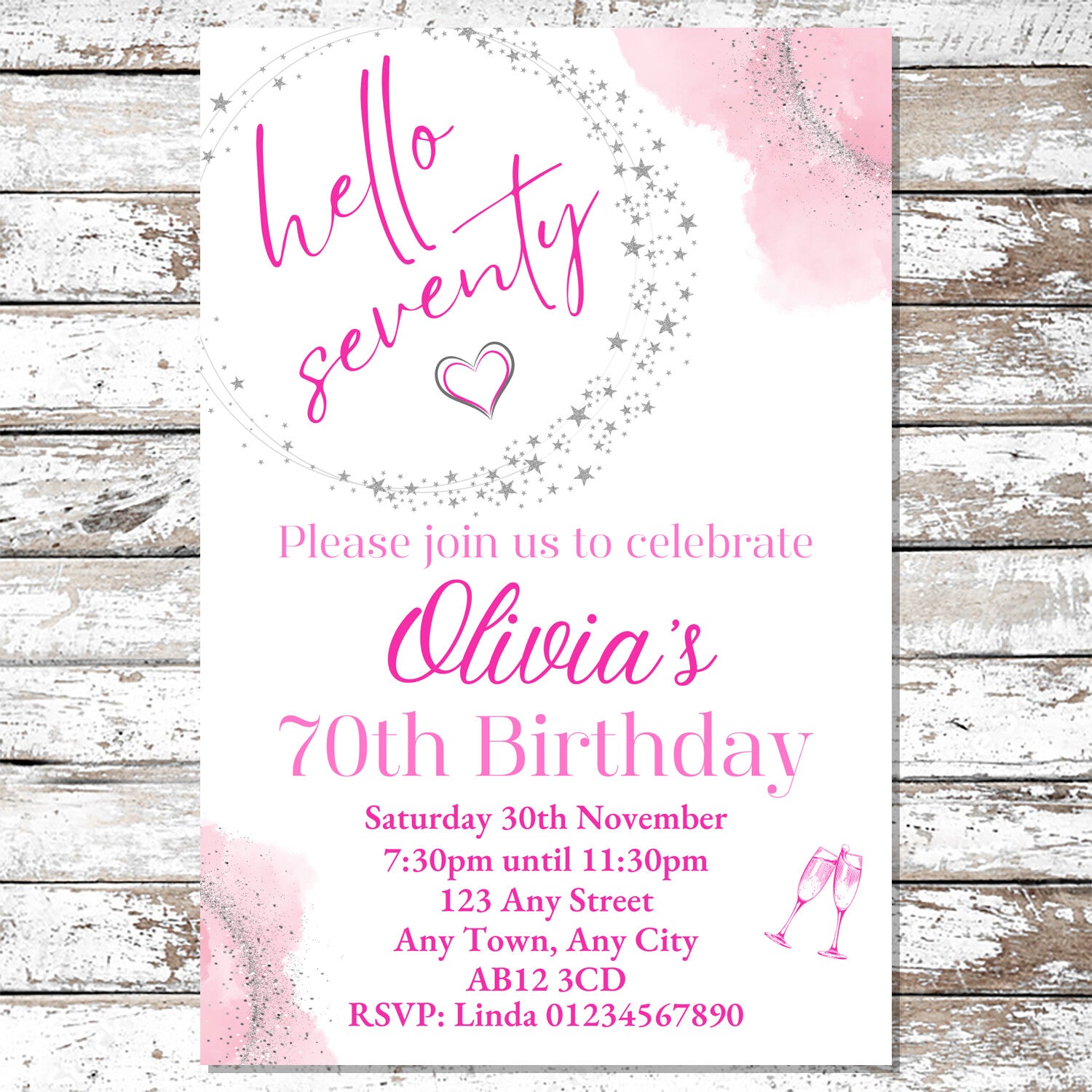10 Personalised Pink Any Age Party Invitations With Envelopes