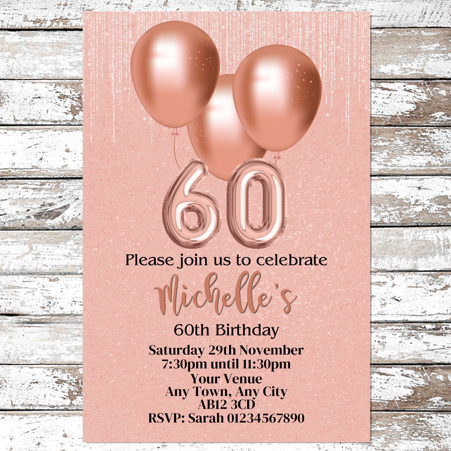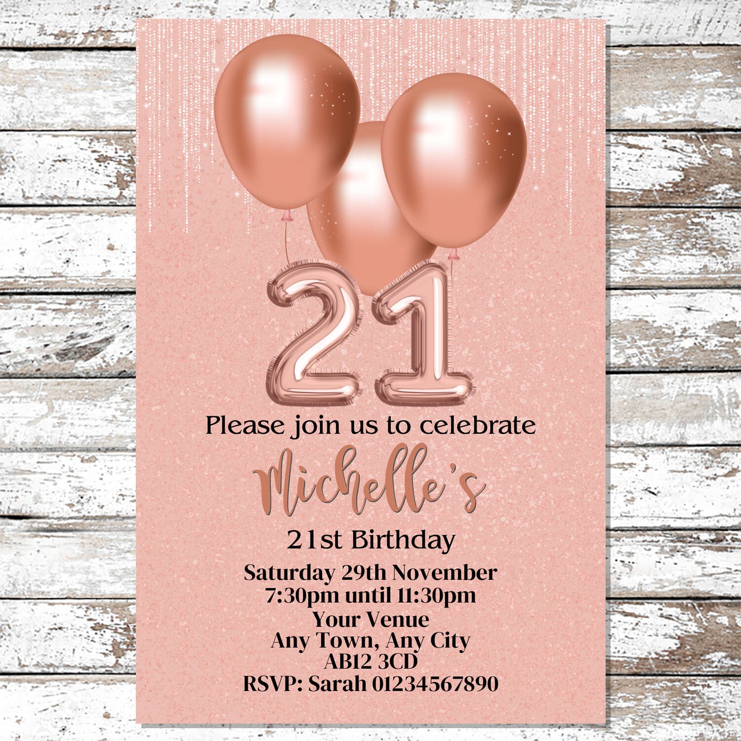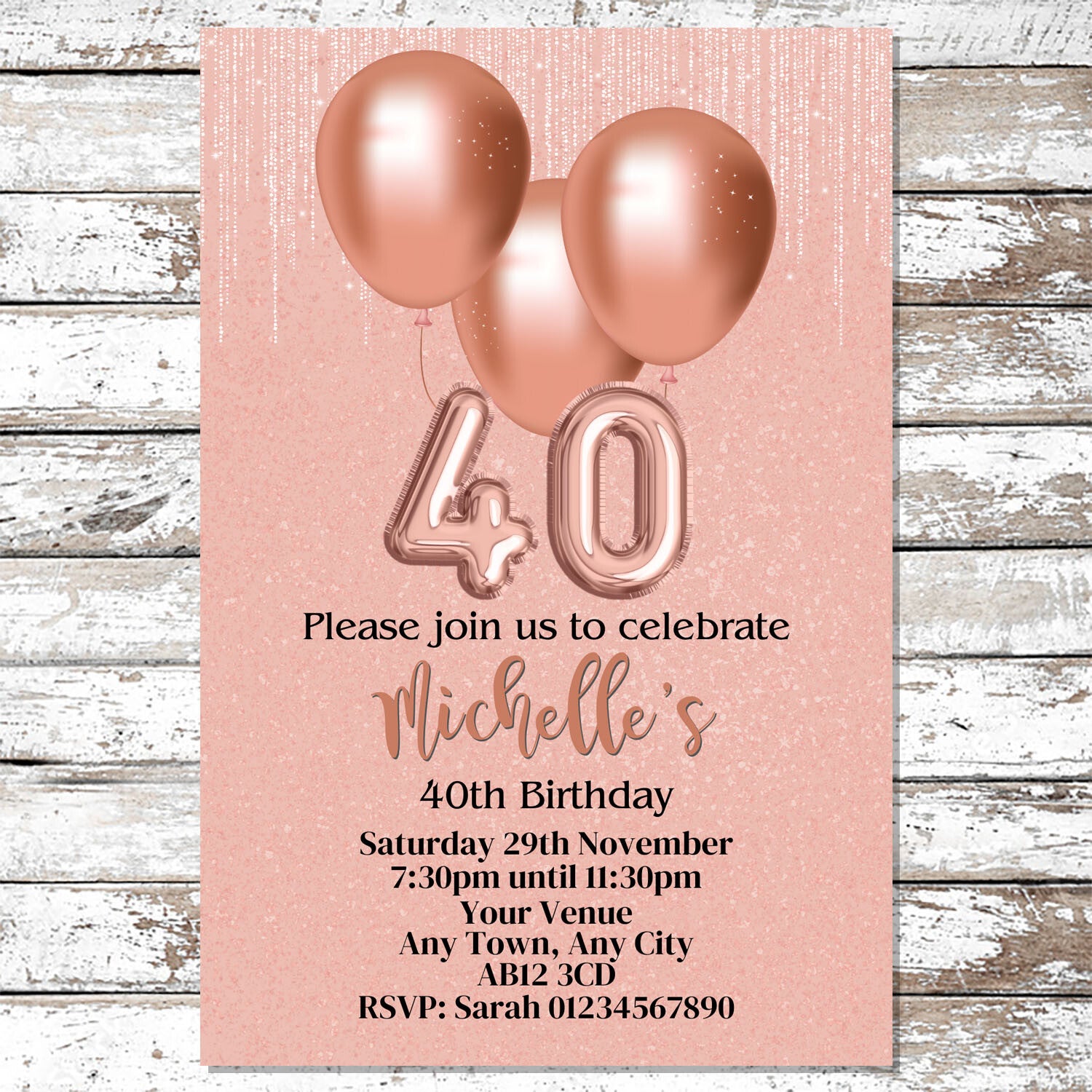 10 Personalised Rose Gold Balloons Any Age Party Invitations With Envelopes