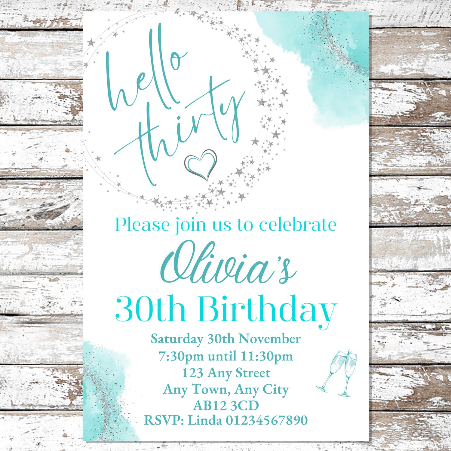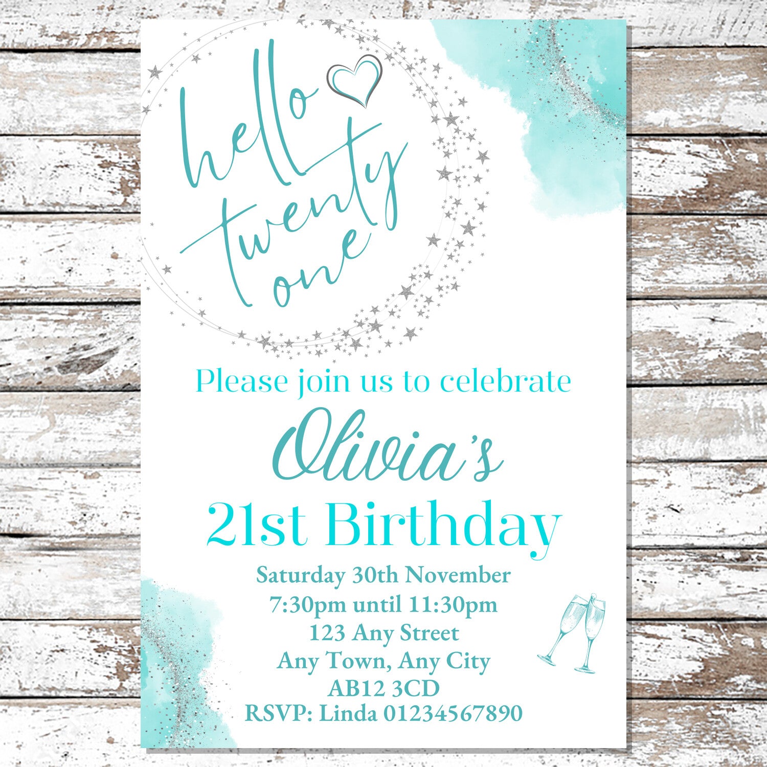 10 Personalised Turquoise Any Age Party Invitations With Envelopes