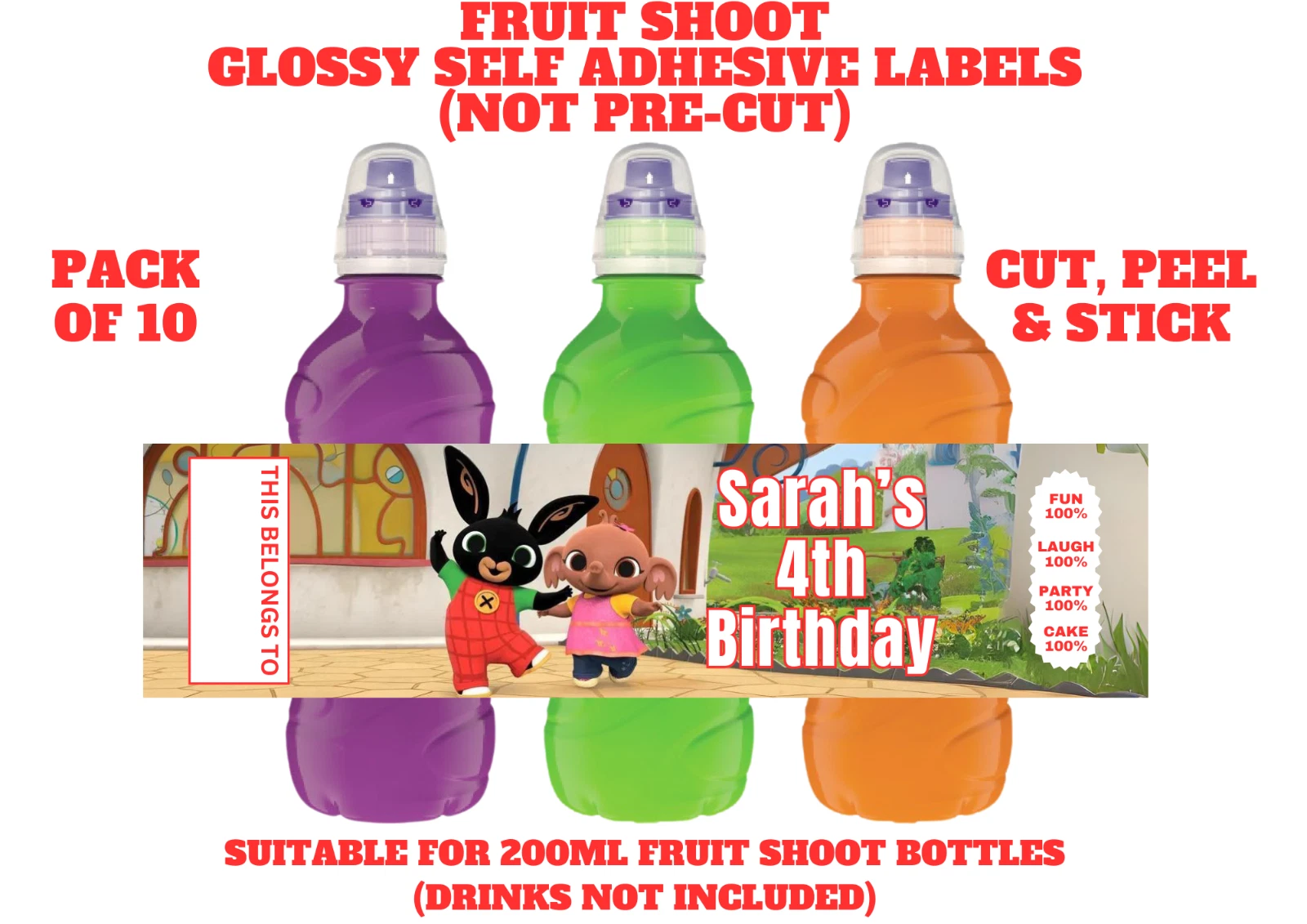 Bing Personalised Fruit Shoot Bottle Self Adhesive Label Wrapper x 10