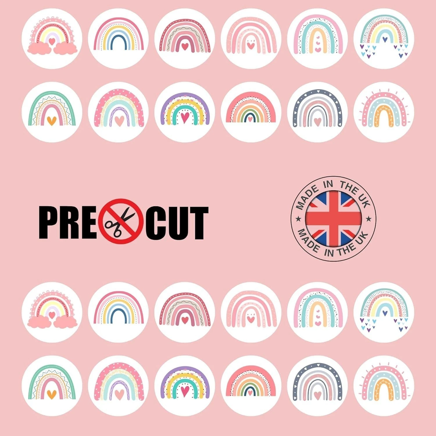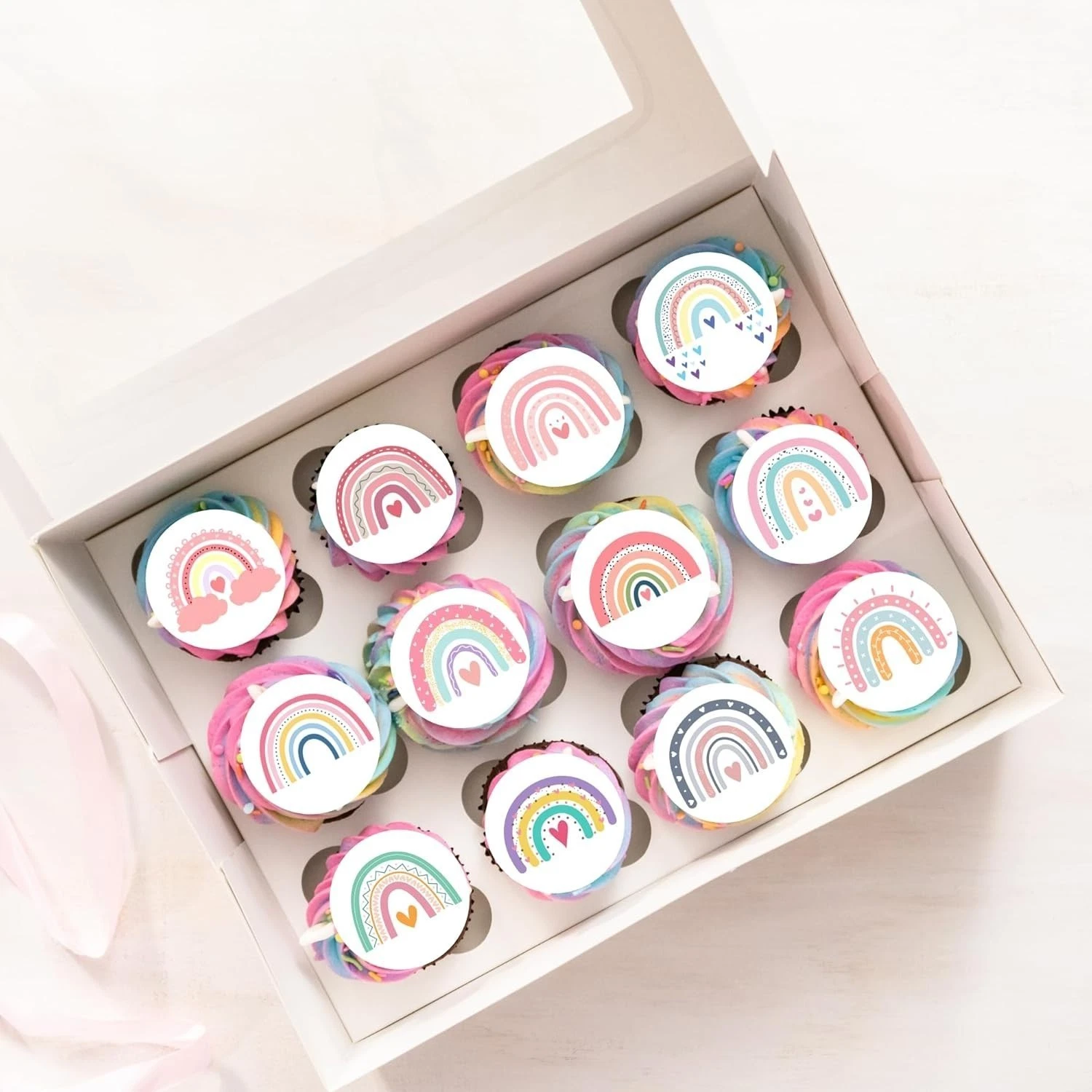 Boho Rainbow Pre-Cut Edible Wafer Cupcake Toppers Pack Of 24