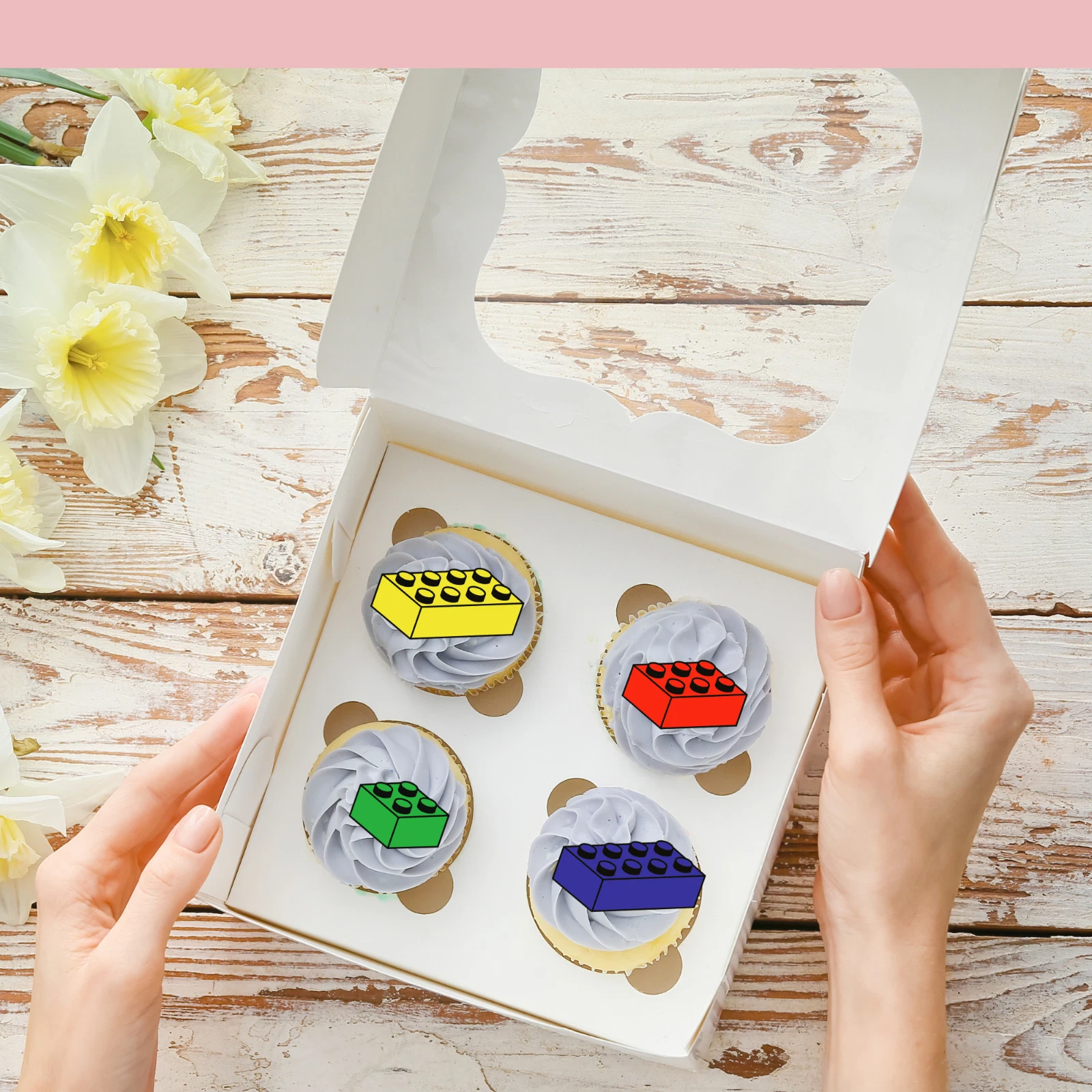 Coloured Bricks Pre-Cut Edible Wafer Cupcake Toppers Pack Of 24