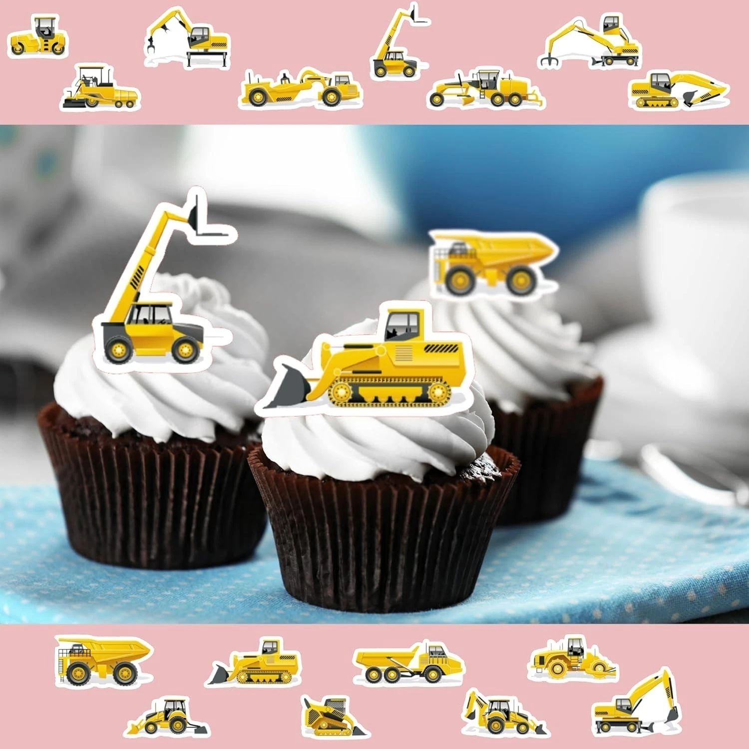 Construction Digger Pre-Cut Edible Wafer Cupcake Toppers Pack Of 16