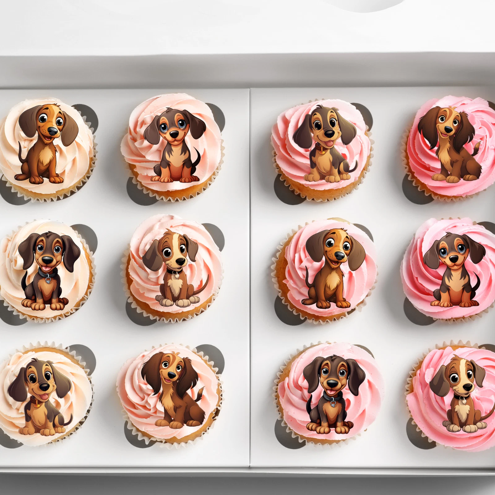 Dachshund Cute Dog Pre-Cut Edible Wafer Cupcake Toppers Pack Of 24