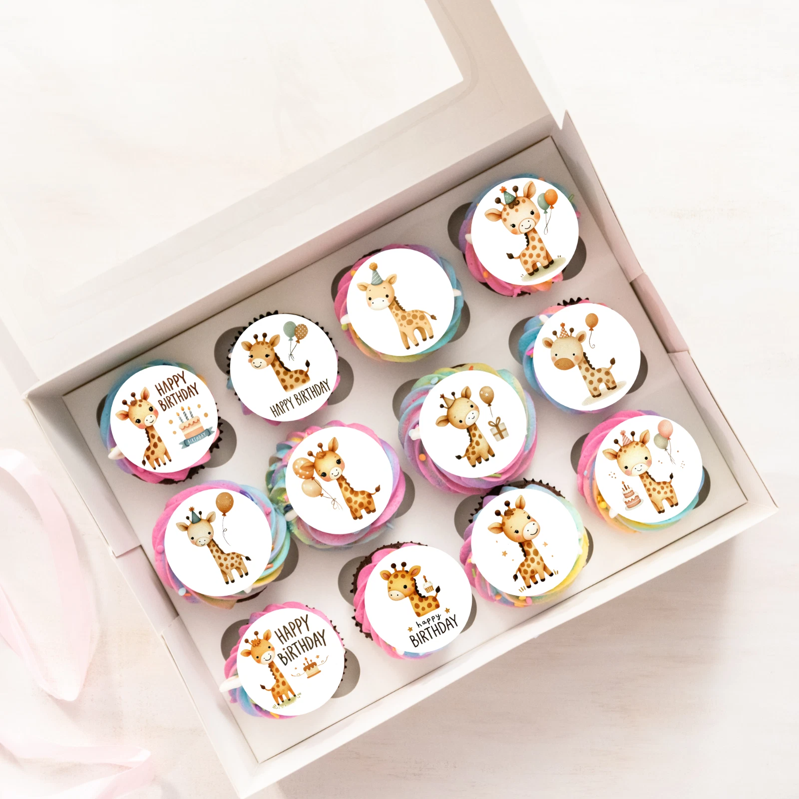 Giraffe Happy Birthday Pre-Cut Edible Wafer Cupcake Toppers Pack Of 24