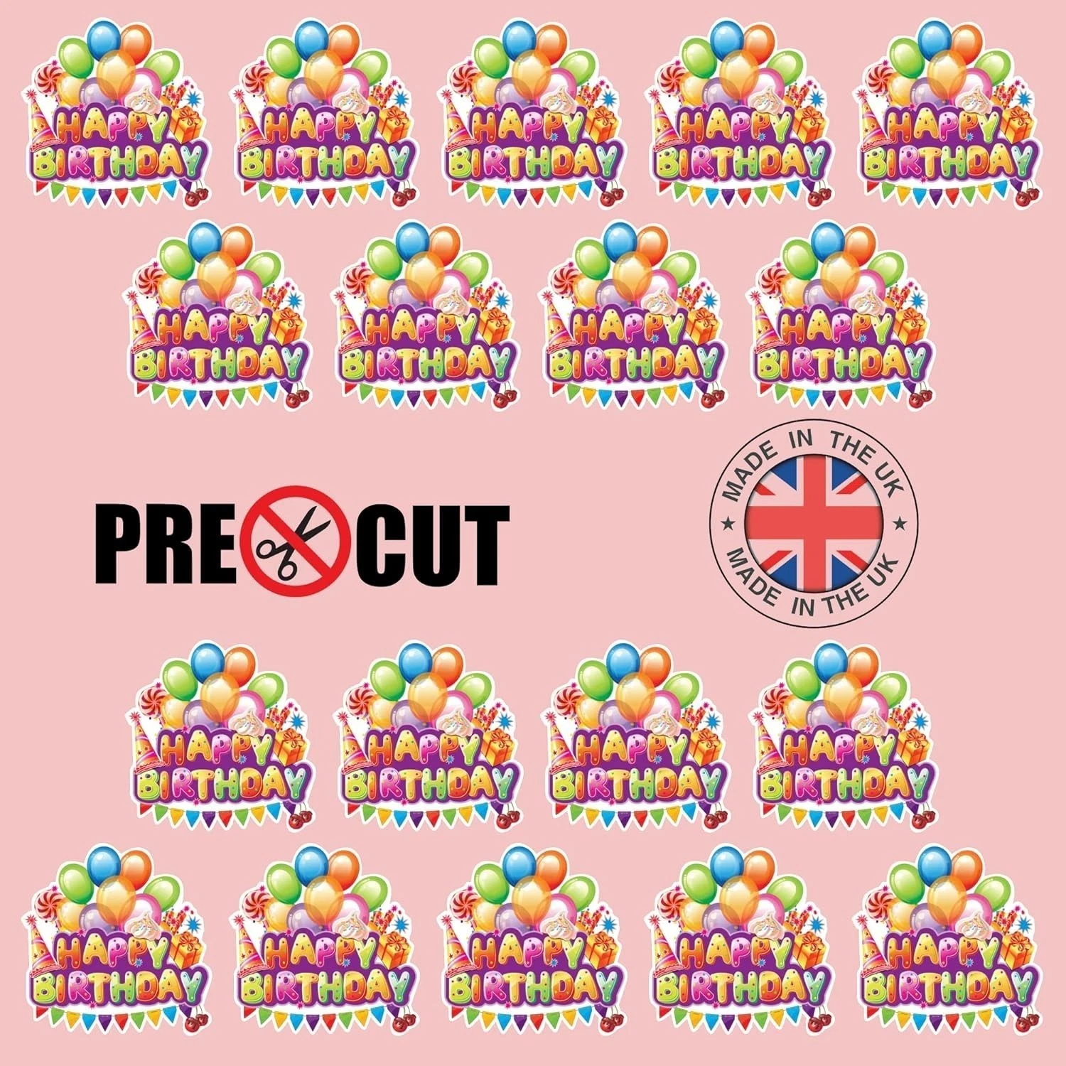 Happy Birthday Balloon Pre-Cut Edible Wafer Cupcake Toppers Pack Of 18