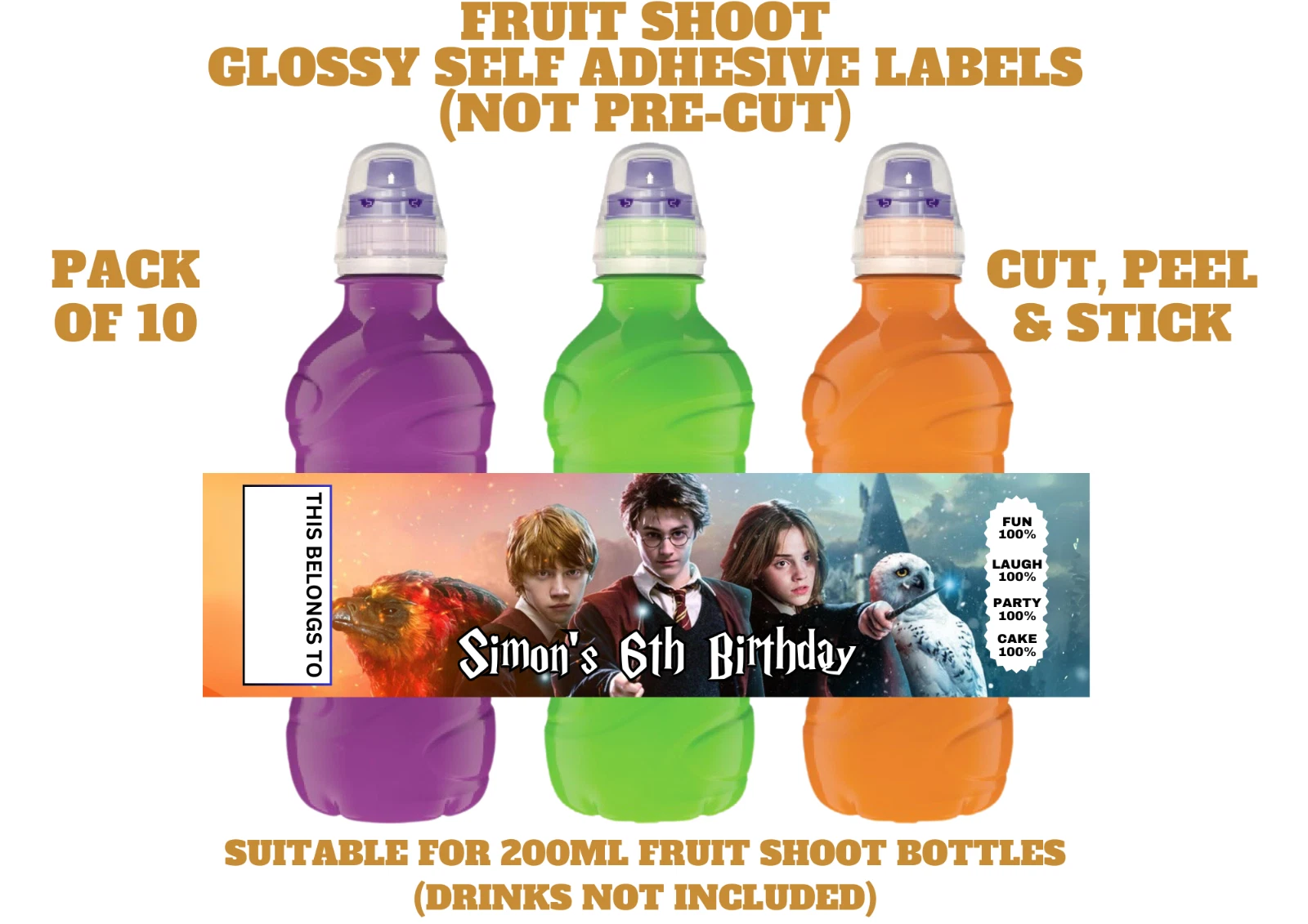 Harry Potter Wizard Personalised Fruit Shoot Bottle Self Adhesive Label Wrapper x 10