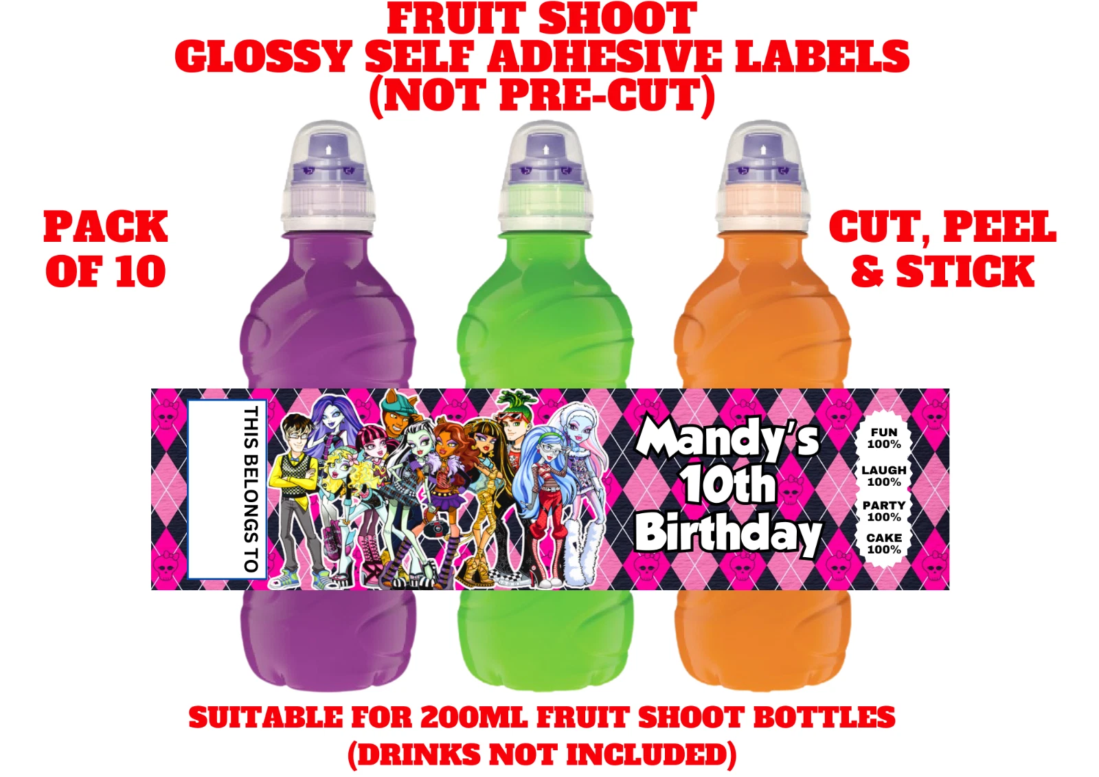 Monster High Personalised Fruit Shoot Bottle Self Adhesive Label Wrapper x 10